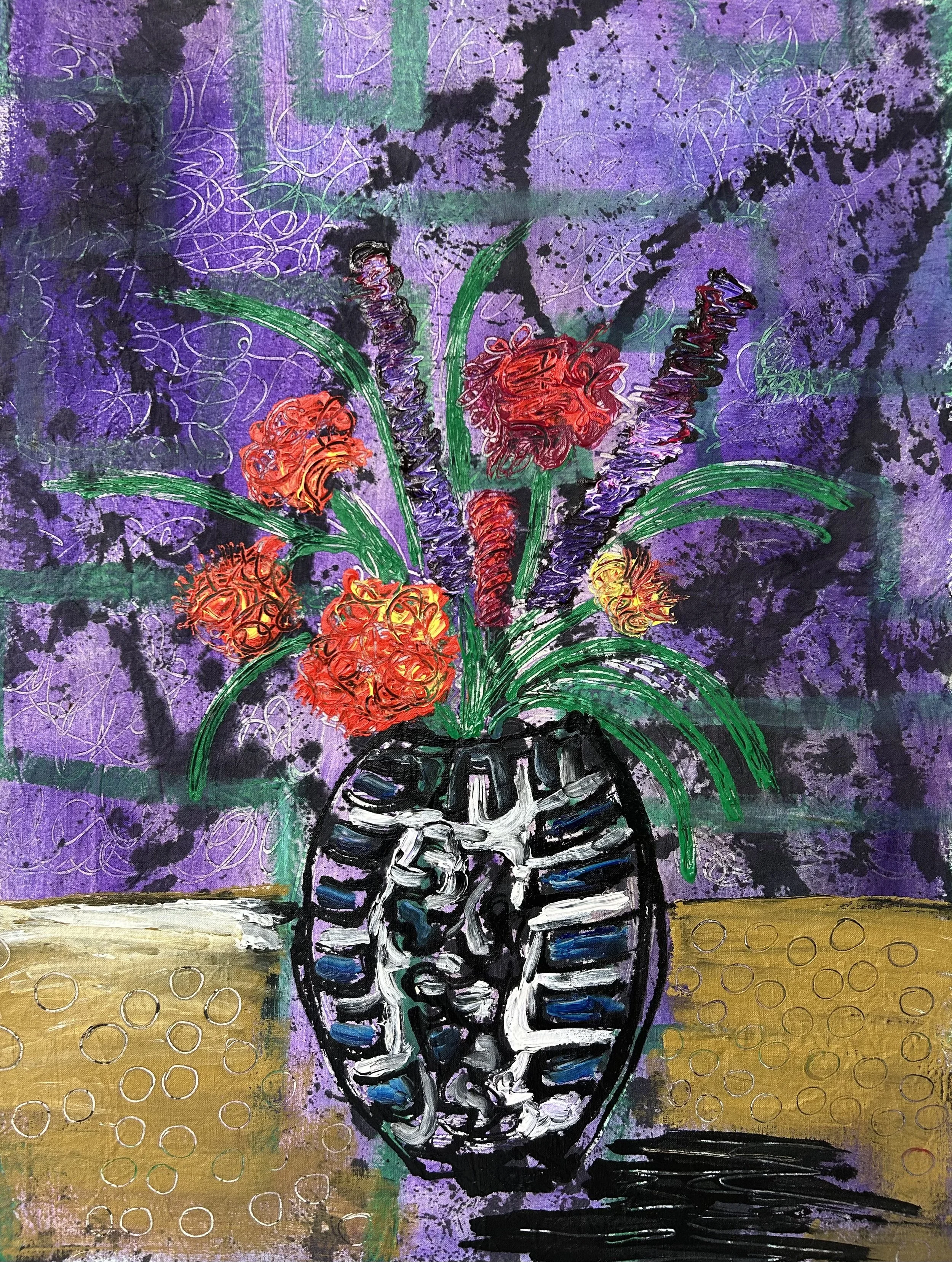 I am currently making textural still life paintings that explore the dark symbolism of flowers.